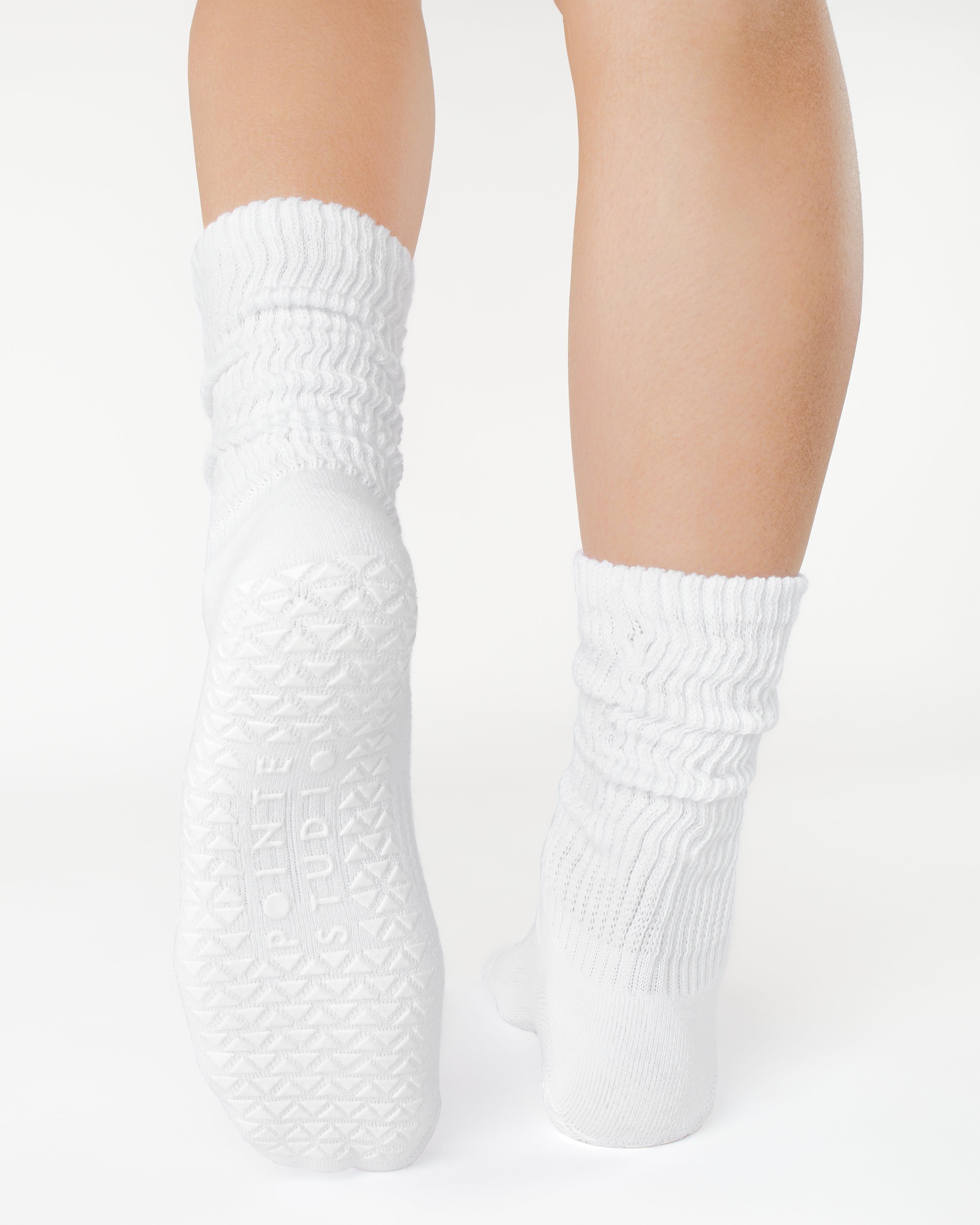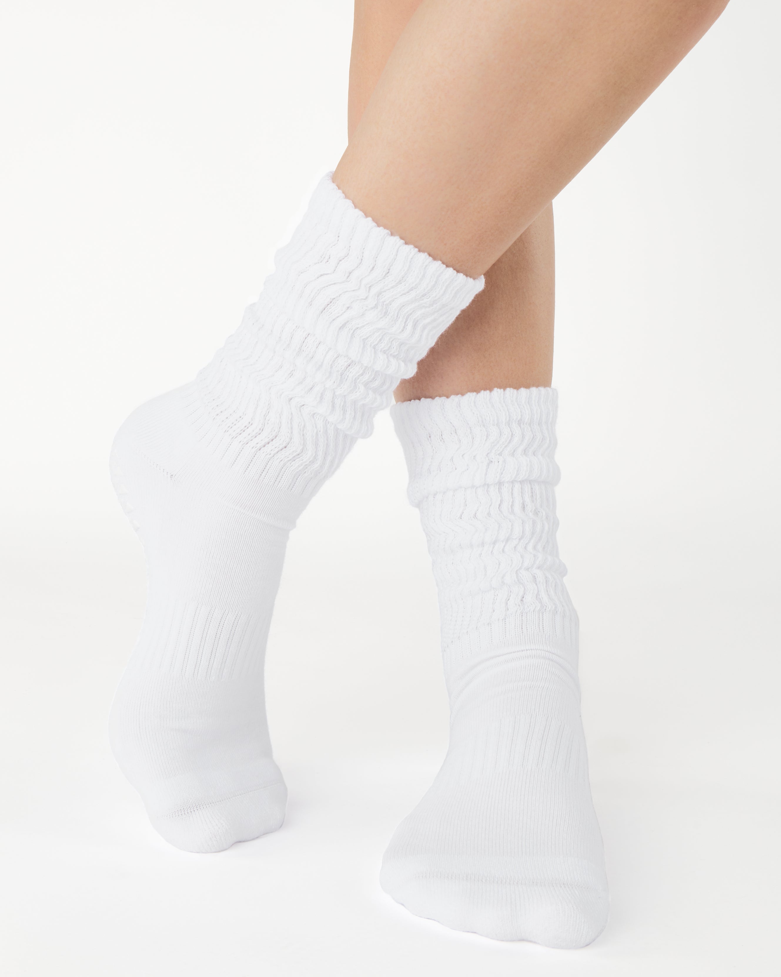 The Slouch Crew is our playful nod to a nostalgic design that has remained a favorite through the decades. This mid-weight knit sock is crafted to scrunch while providing the support you need to power through your toughest routines. With a cushioned terry footbed, complete grip coverage, and compression arch support, it's perfect for Pilates, barre, yoga, and beyond. Embrace the throwback vibe while staying comfortable and confident!